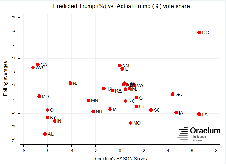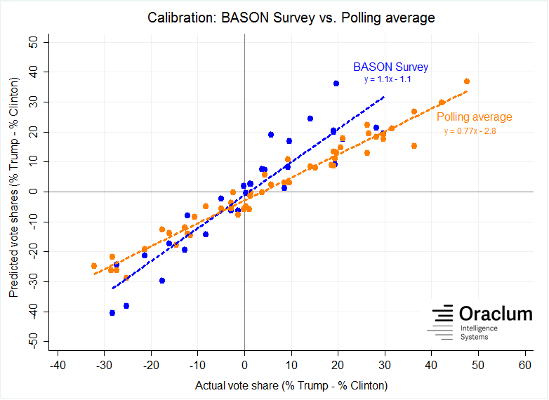 Figure 2: Oraclum’s BASON Survey vs. polling average for Trump