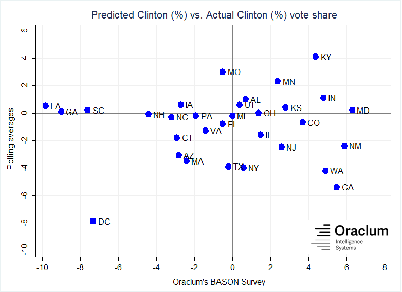 Figure 3: Oraclum’s BASON Survey vs. polling average for Clinton