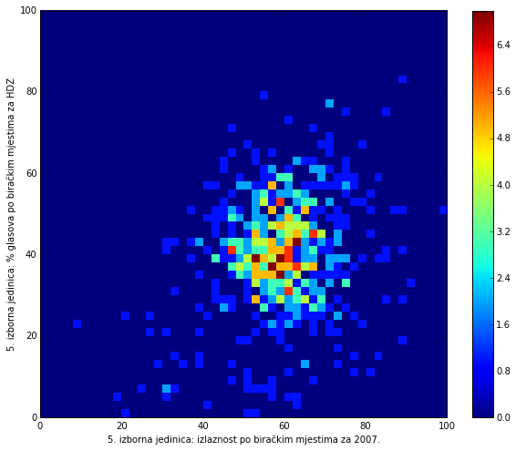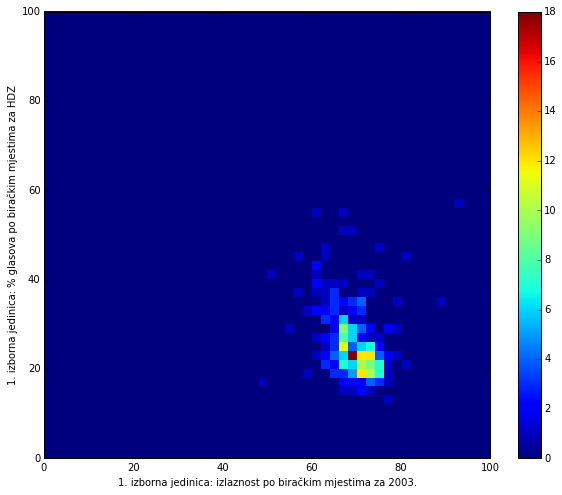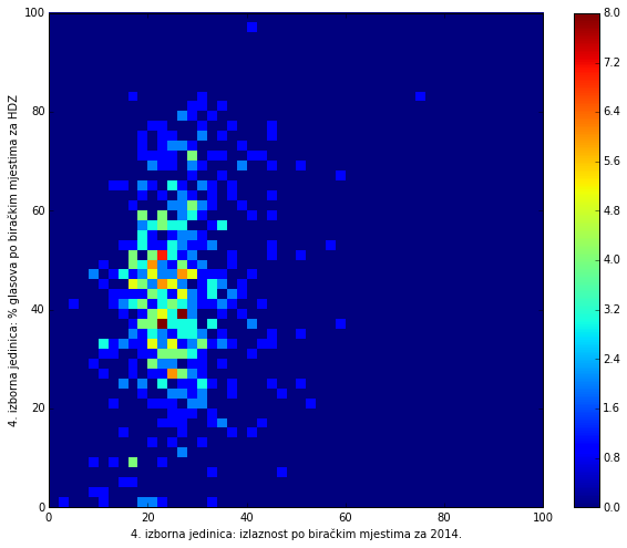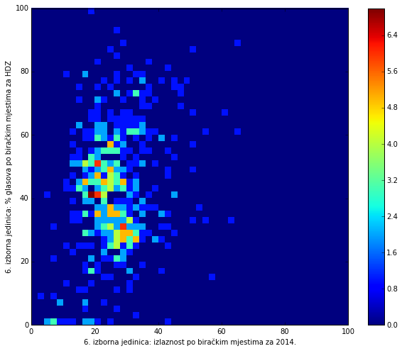 The graph shows the difference in % of votes for Josipovic and Grabar Kitarovic (y-axis) with respect to total turnout (x-axis) for each voting station. Even though this represents only a slight trend in favor of the center-right candidate, it is interesting to notice that areas of overwhelmingly high turnout did not favor the left, but the right instead.