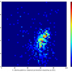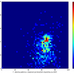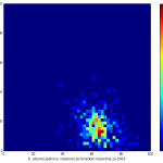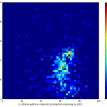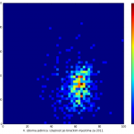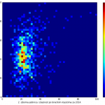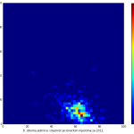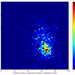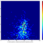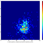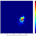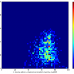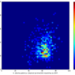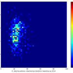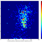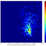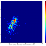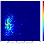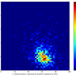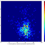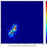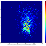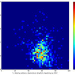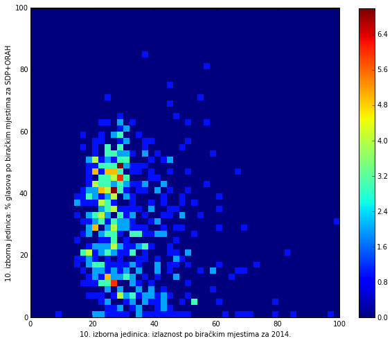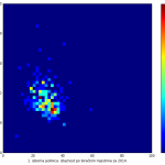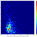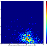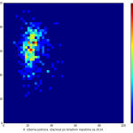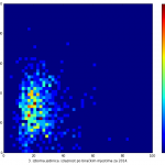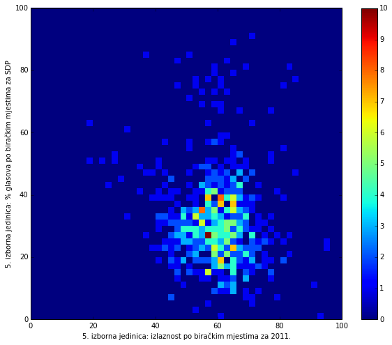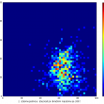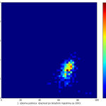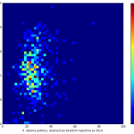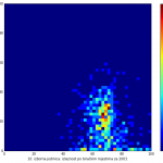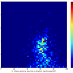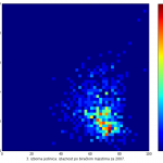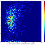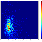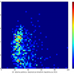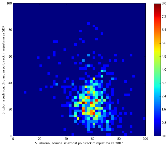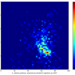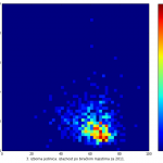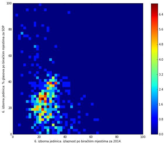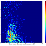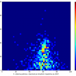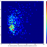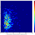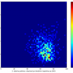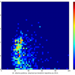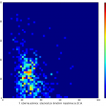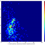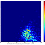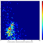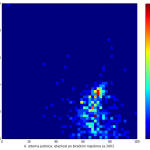 Heat maps illustrate the two-variable relationship where denser clustering around some point is painted with warmer colors. The denser clustering around the middle points to no relationship between turnout and votes, while a longitudinal clustering points to an existence of a trend where higher turnout increases of decreases the vote share of a given party. Also note that some of the clustering pointing out to a trend in one electoral cycle does not have to hold for the next one.