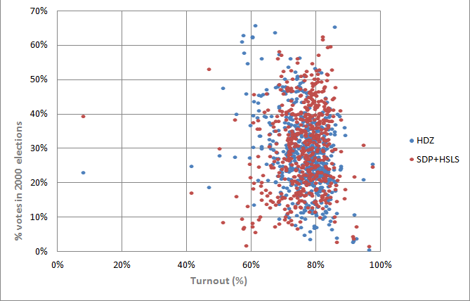As part of our election forecasting project of the 2015 Croatian general election, during the two months of pre-election build up we were required to analyze the four previous electoral cycles and find some underlying trends that could be helpful in our forecasting model, but also to bust some deeply embedded domestic political myths. One of such myths was the impact of turnout on electoral results.
